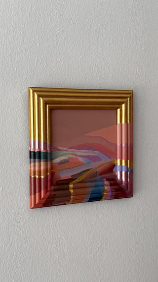 She’s an LA-based artist who sees her practice as a form of meditation—a way to slip into stillness and listen inward. In her work, she’s less focused on the end result and more interested in what unfolds in the moment. That approach shows up in her materials and surfaces—repurposed objects and thrifted frames layered with mixed media. Her choices are intentional but open-ended, allowing room for the unexpected.