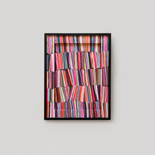Abstract rhythms inspired by books leaning on a shelf, where order meets quiet movement.