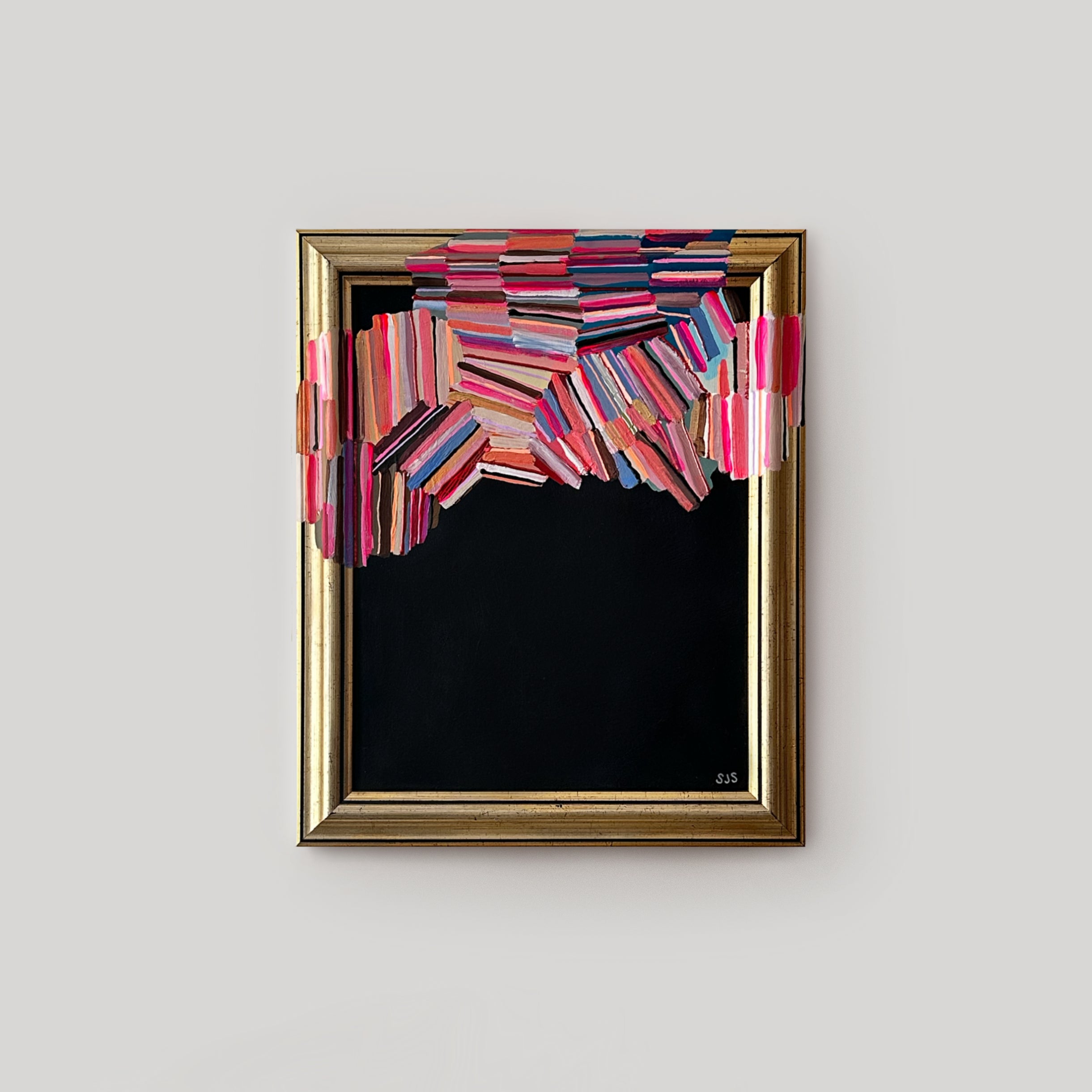 "Sarah J. Schwartz is my favorite artist! Her frame incorporation makes her art so easy and accessible to new art collectors. I have multiple gallery walls with her pieces, they flow so well together!"