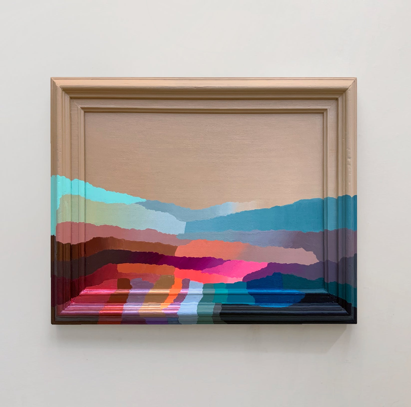 Acrylic paint on repurposed 20”x16” frame and artboard.