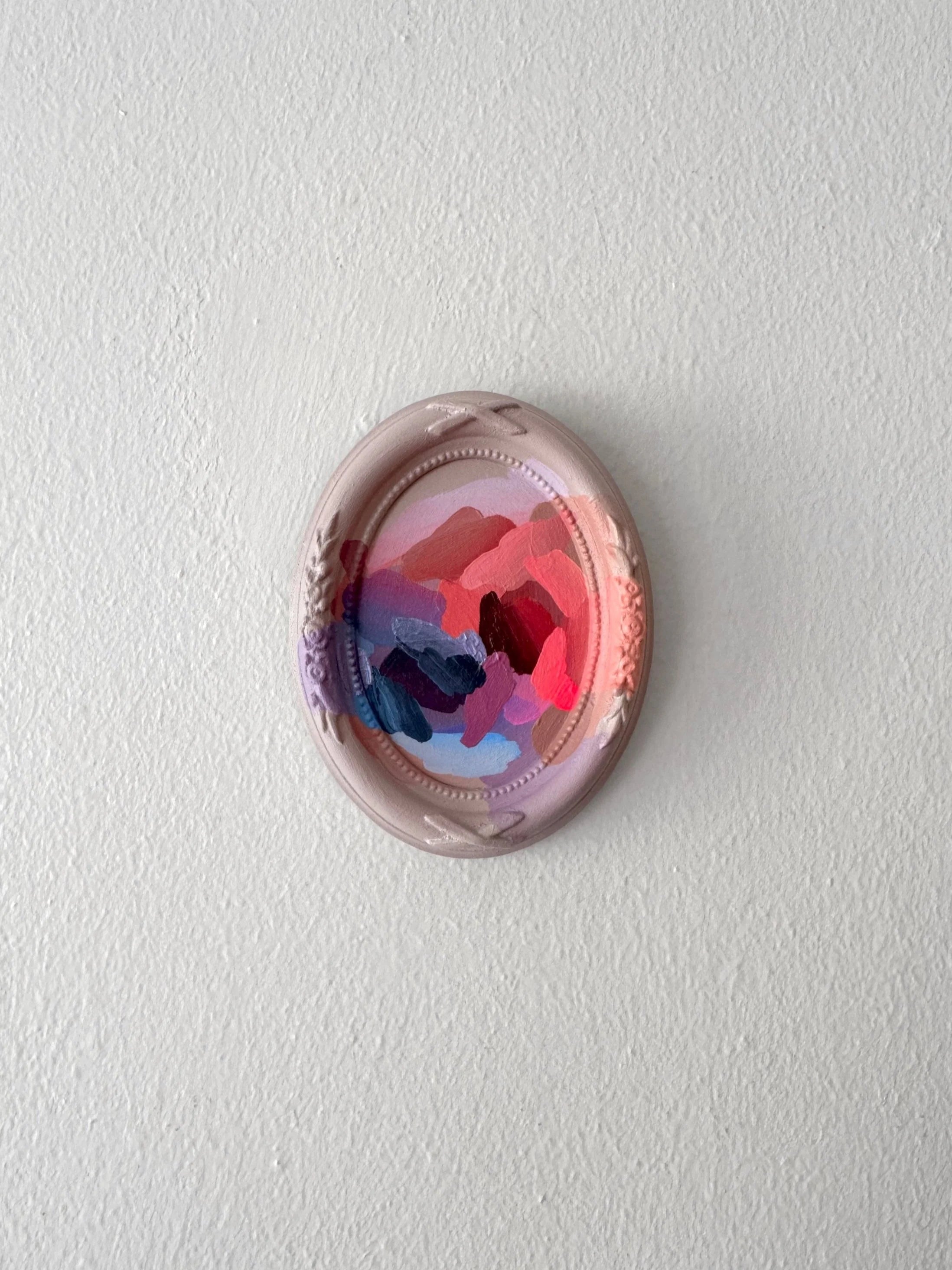 Acrylic on paper and MDF frame. Overall dimensions are 3.5×4.5”.
