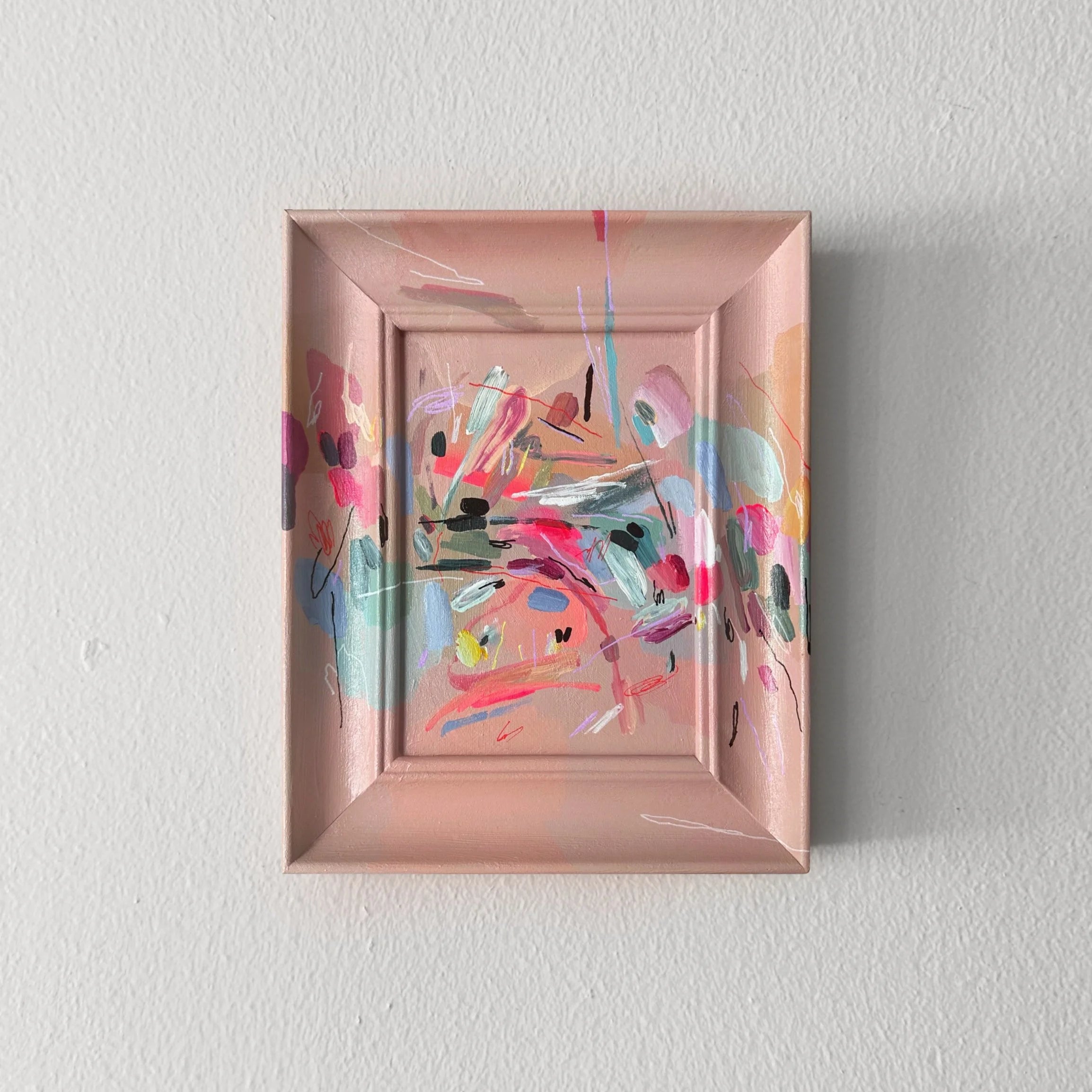 Acrylic and marker on art board and wooden 8×10” frame. Shipping added on next steps.