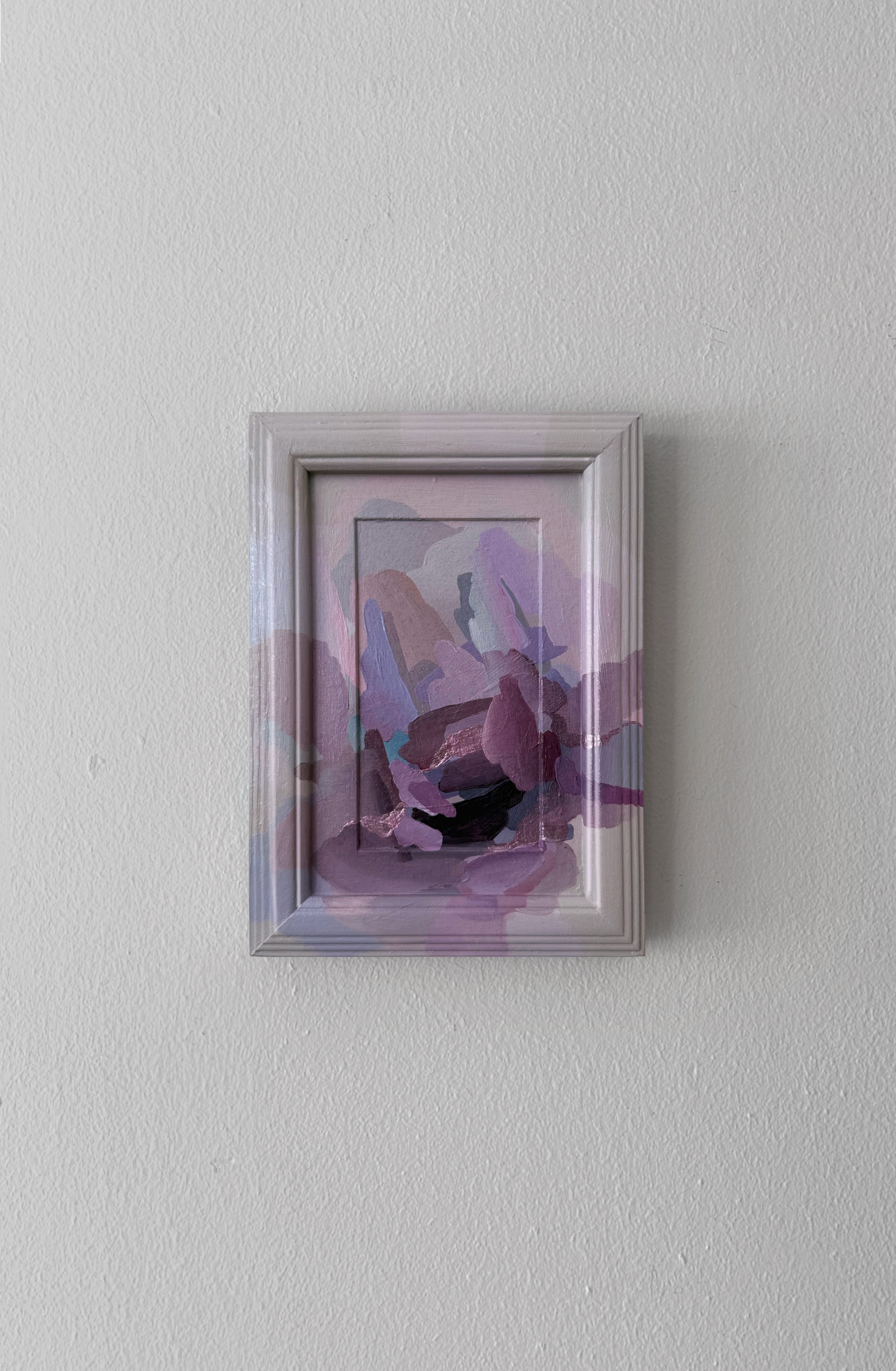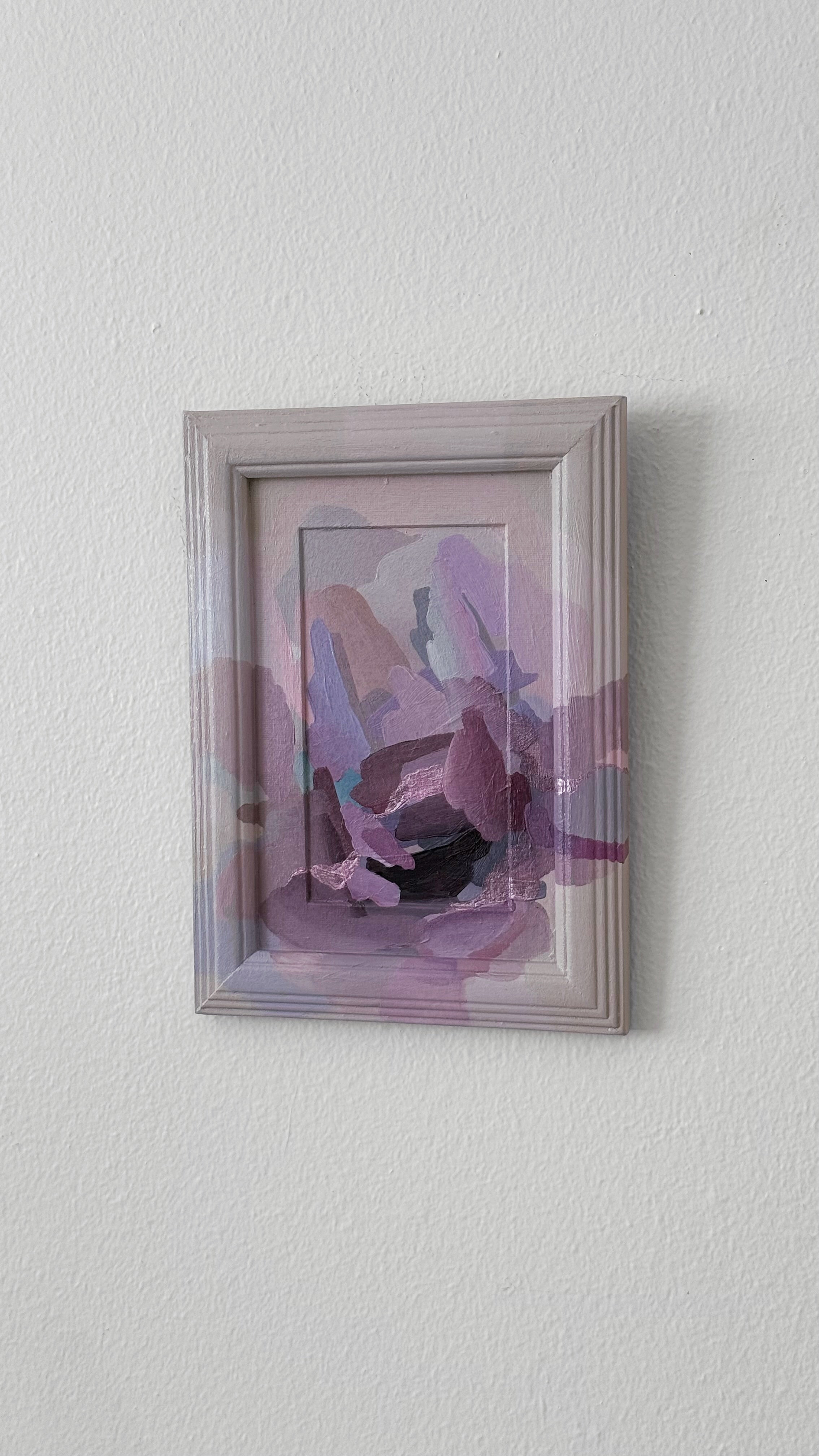 Acrylic on art board and wood. Overall dimensions are 5.25×7.25”.