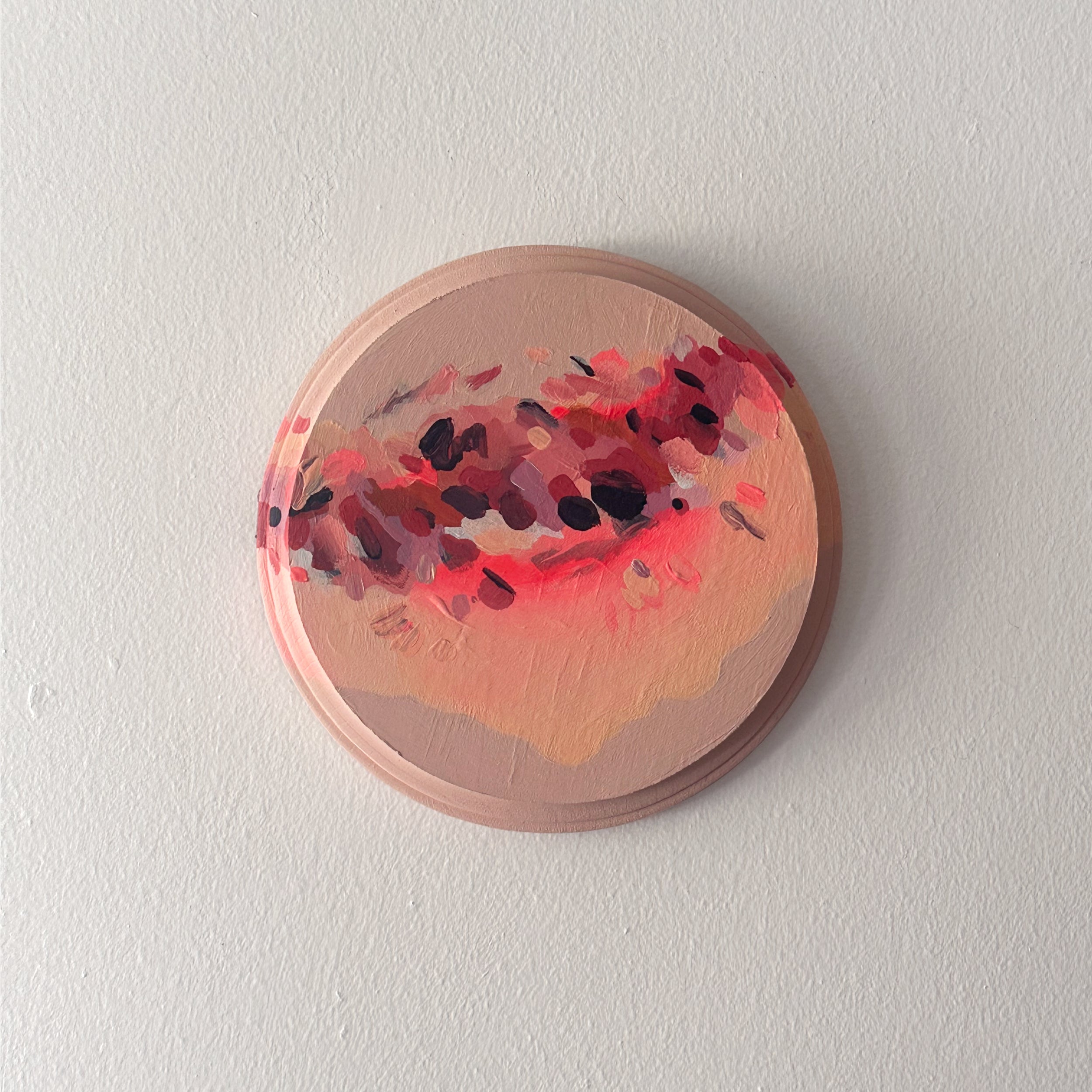 Acrylic paint on circular wooden 6.75" panel. Shipping added on next steps.