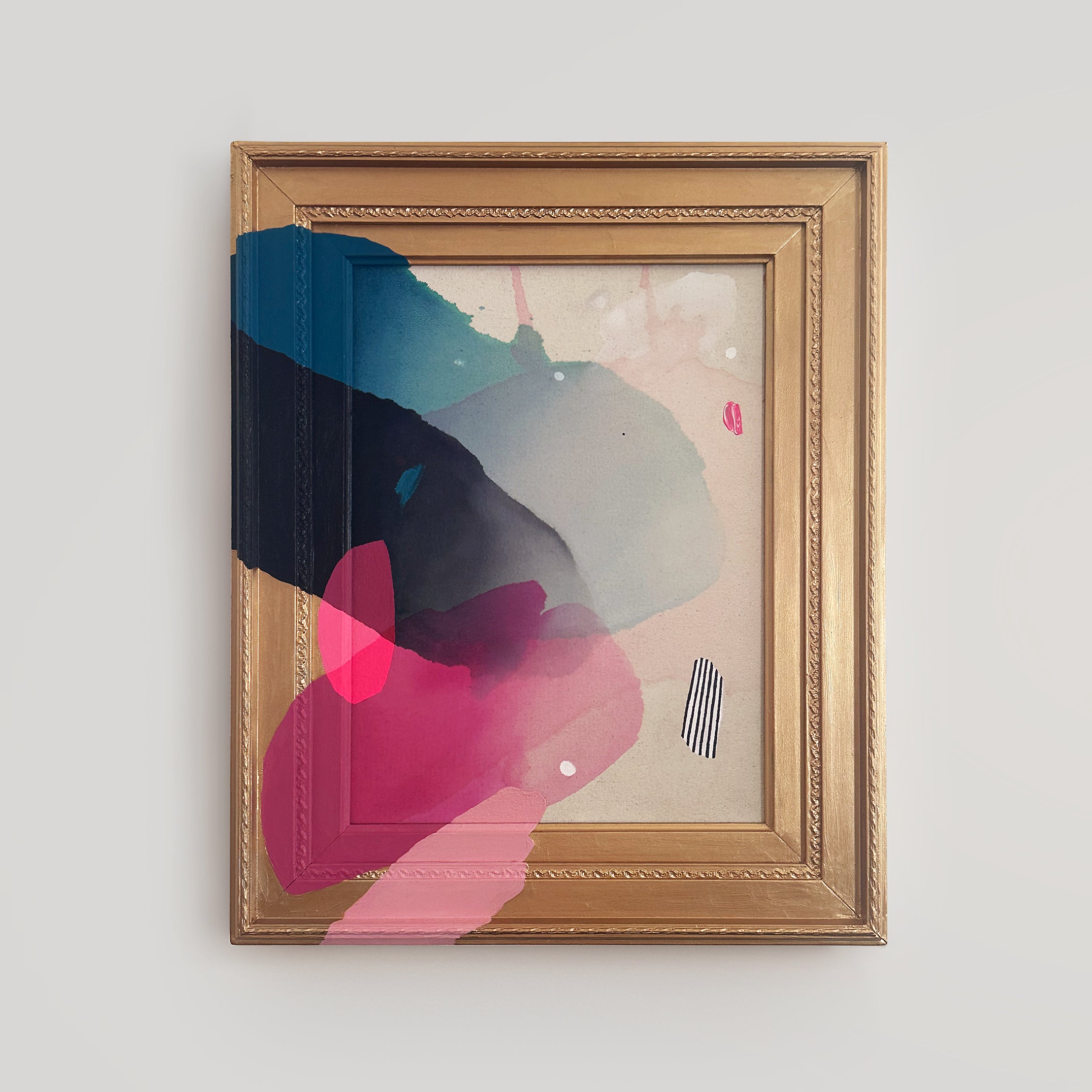 "Sarah J. Schwartz is my favorite artist! Her frame incorporation makes her art so easy and accessible to new art collectors. I have multiple gallery walls with her pieces, they flow so well together!"