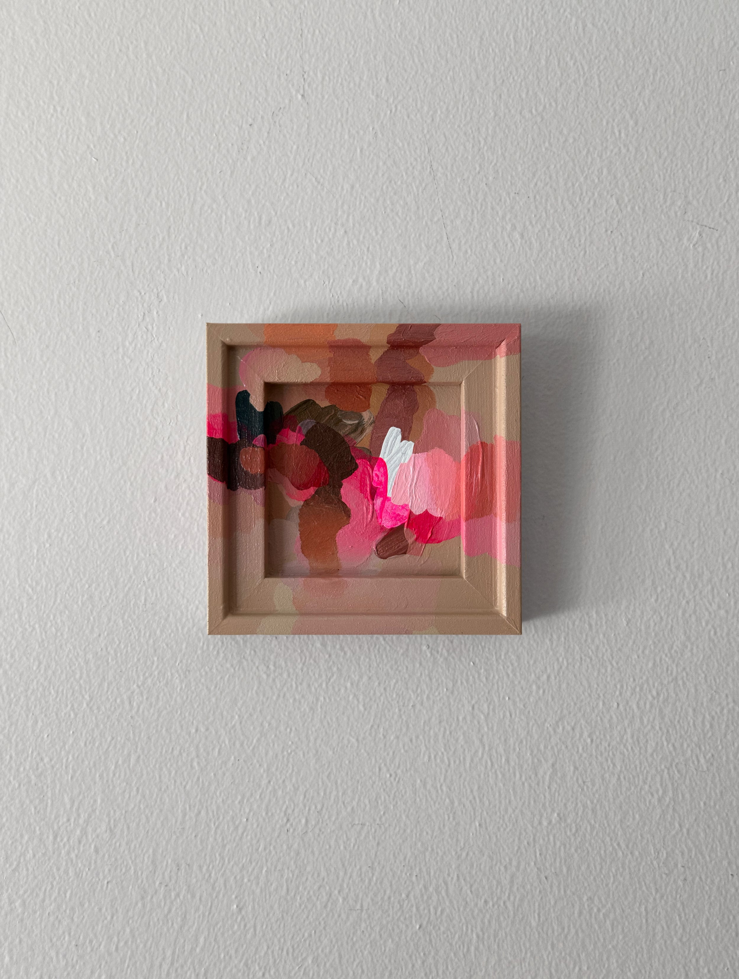Acrylic on paper and MDF frame. Overall dimensions are 4×4”.