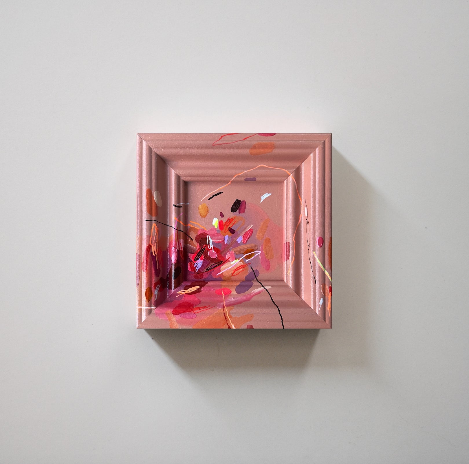 Acrylic and marker on artboard and wooden 6.75×6.75” frame. Shipping added on next steps.