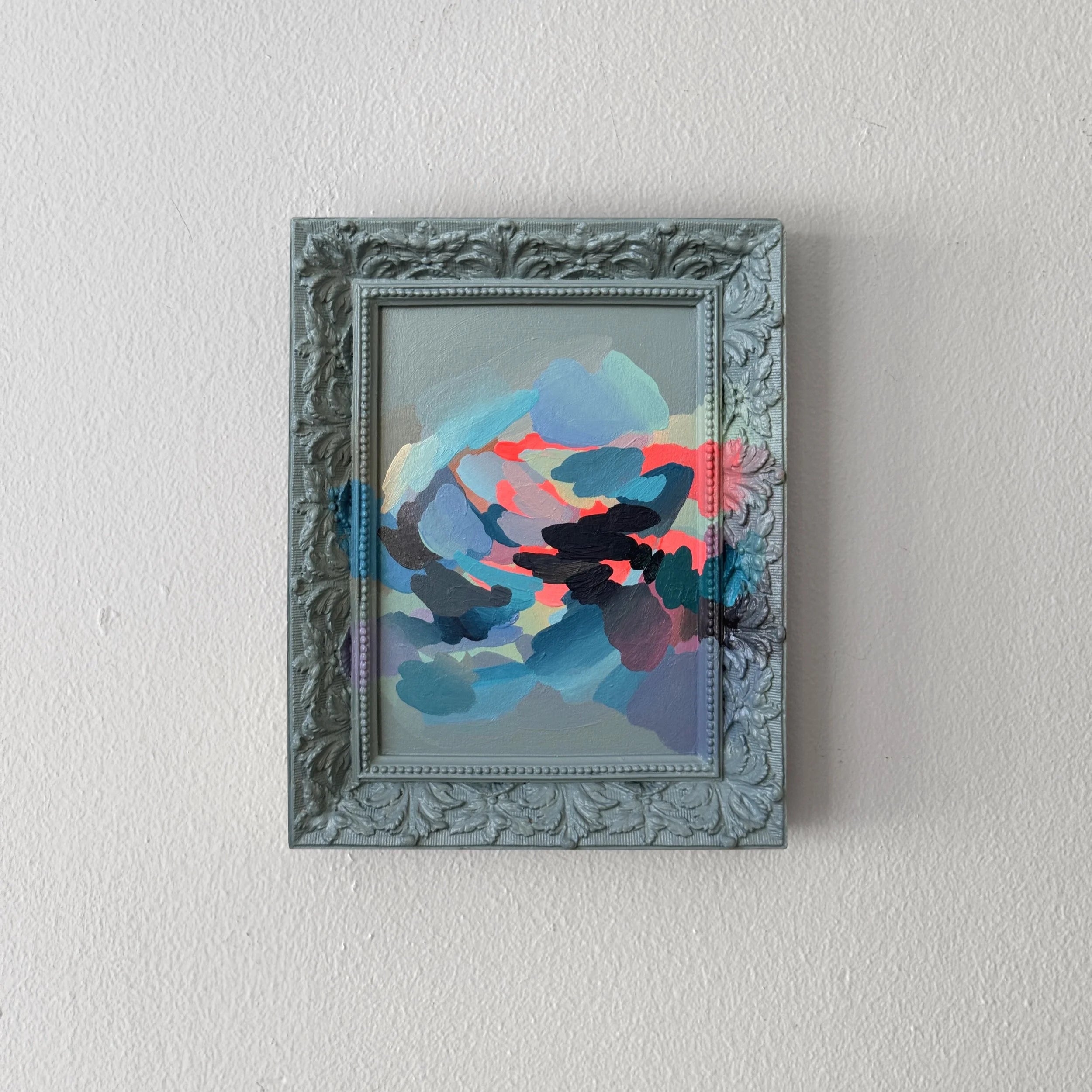 Acrylic on artboard and thrifted frame. Measures 6.75x8.5".