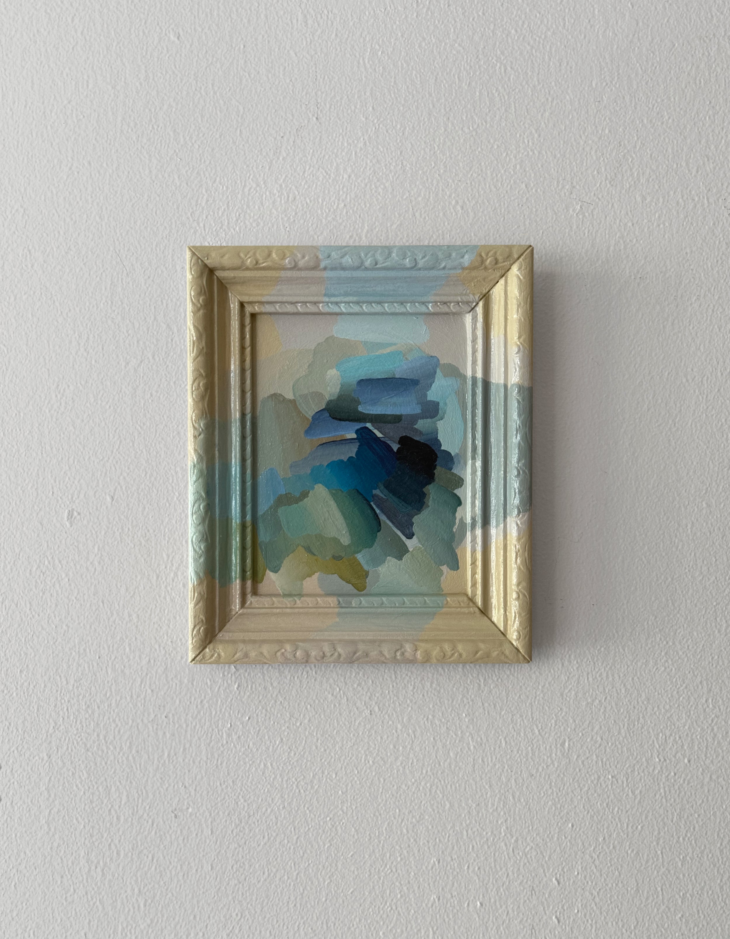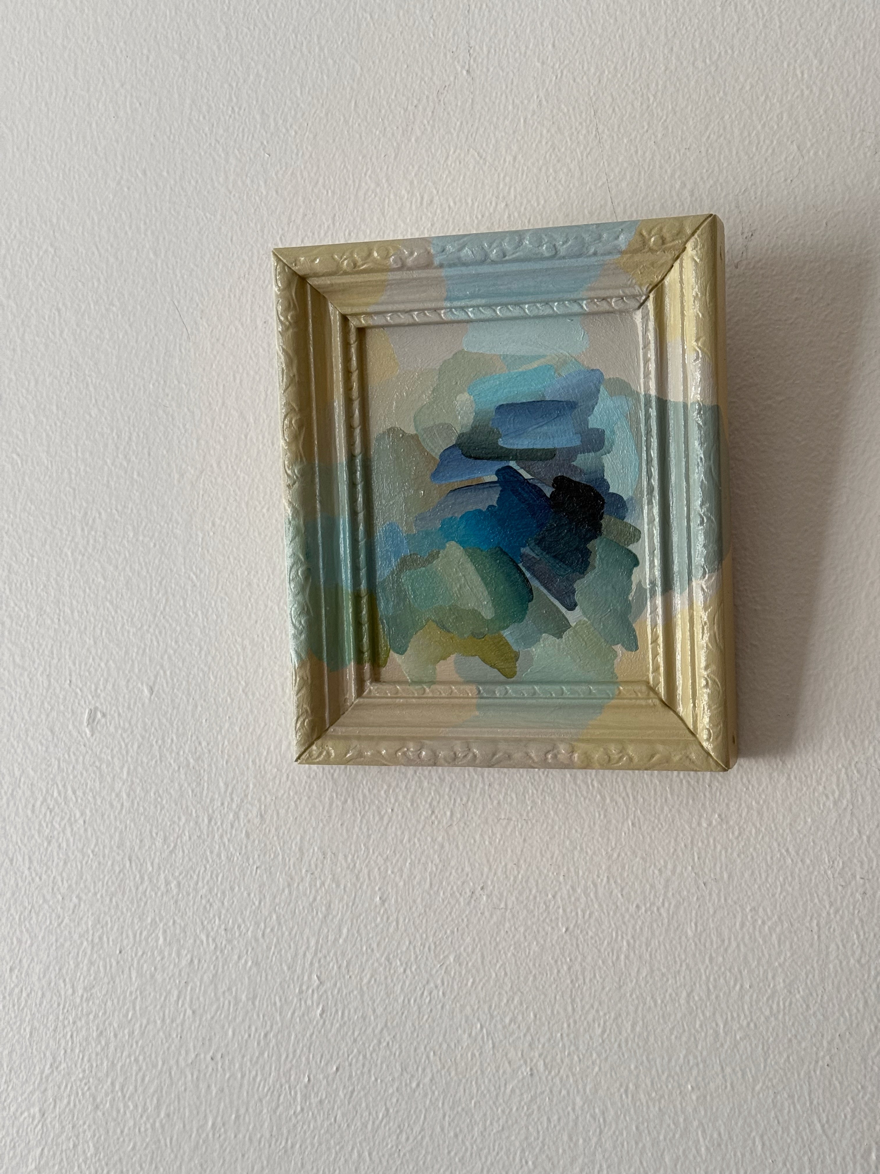 Sometimes, we all need a good reset. Overall dimensions are 5.5×6.5” Materials include acrylics on art board and wooden frame. Shipping and insurance added on next steps.