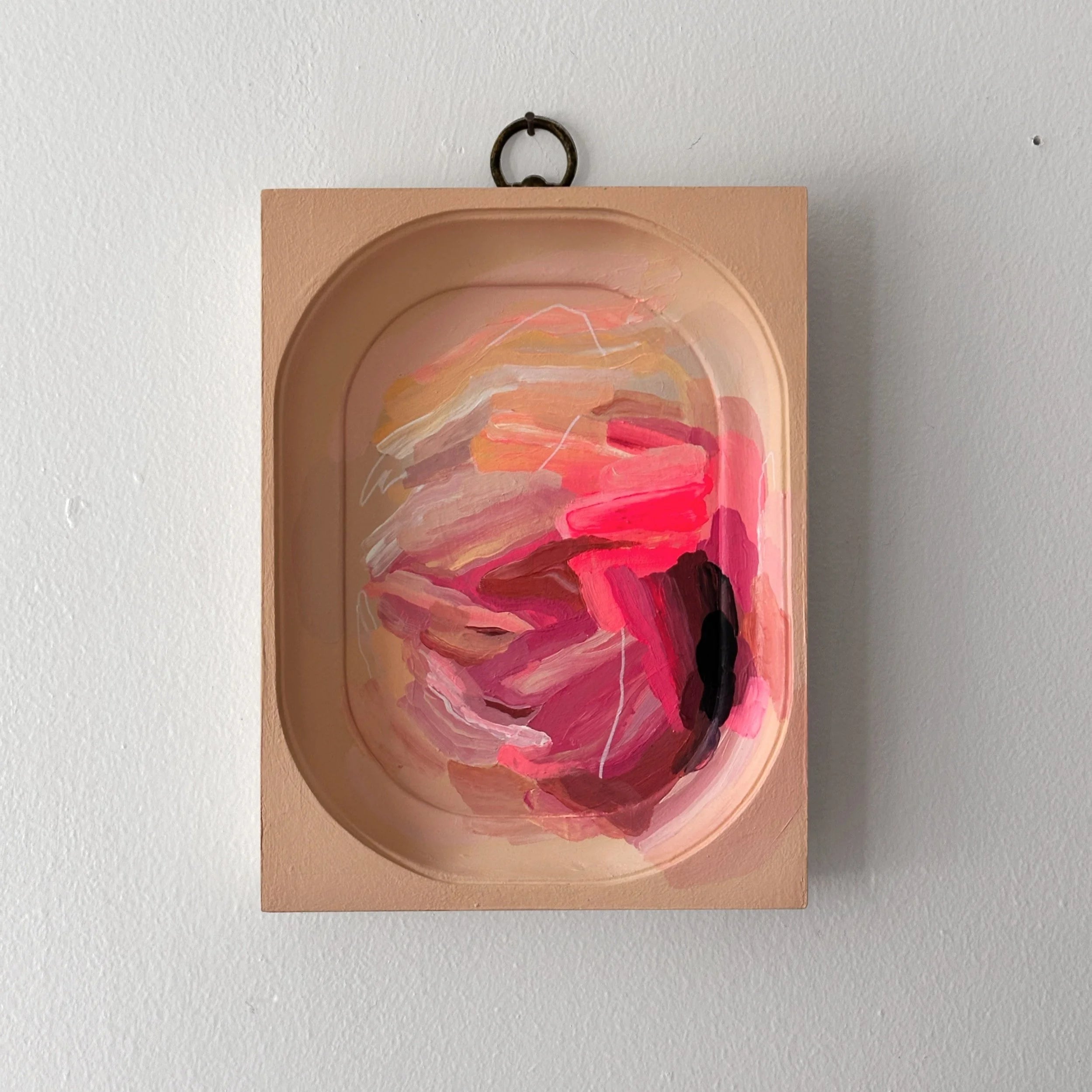 This piece reminded me of trips to the zoo with my boo in the desert sun while looking at the flamingos. It's acrylic paint on repurposed 7x10.5" frame. Shipping added on next steps.