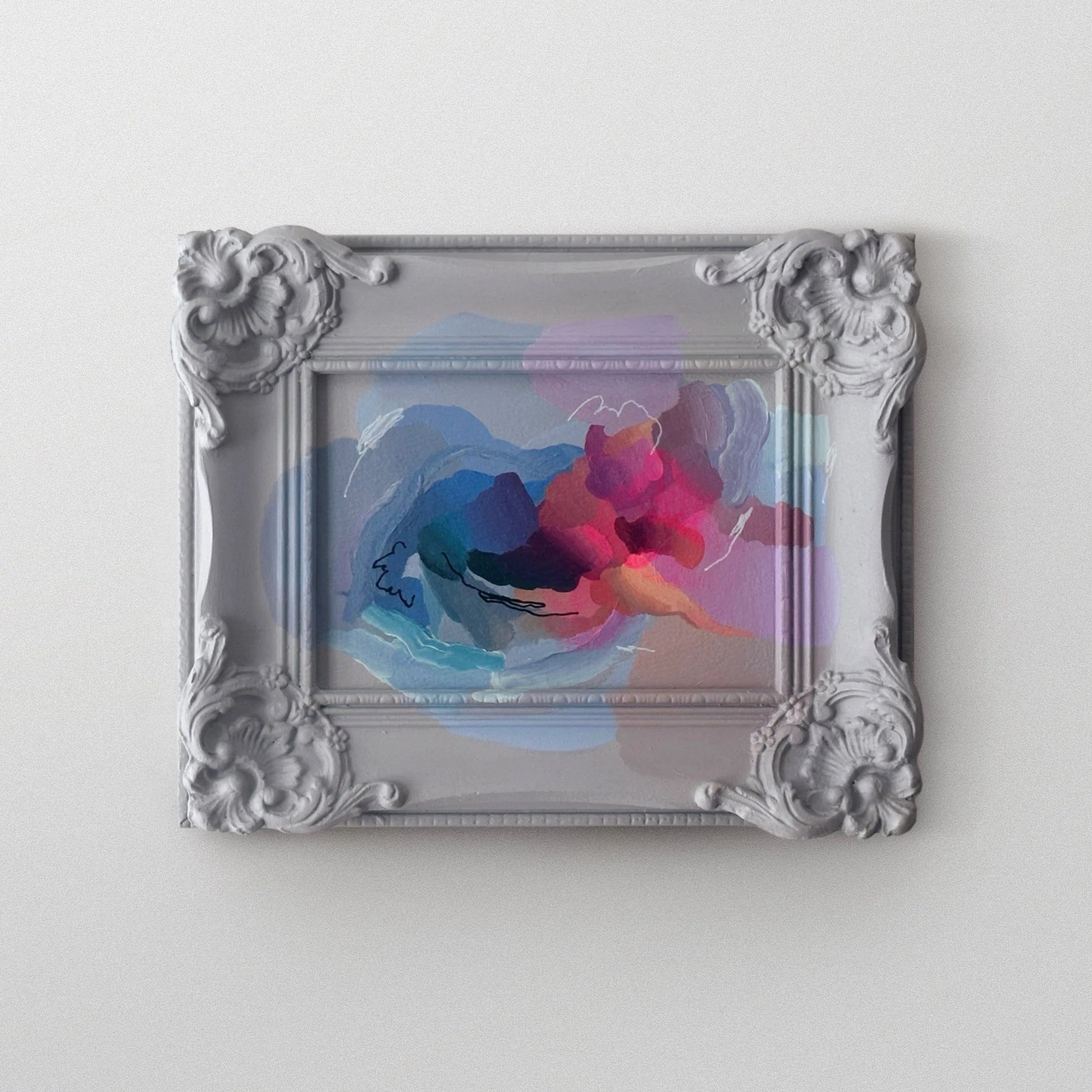 "Sarah J. Schwartz is my favorite artist! Her frame incorporation makes her art so easy and accessible to new art collectors. I have multiple gallery walls with her pieces, they flow so well together!"