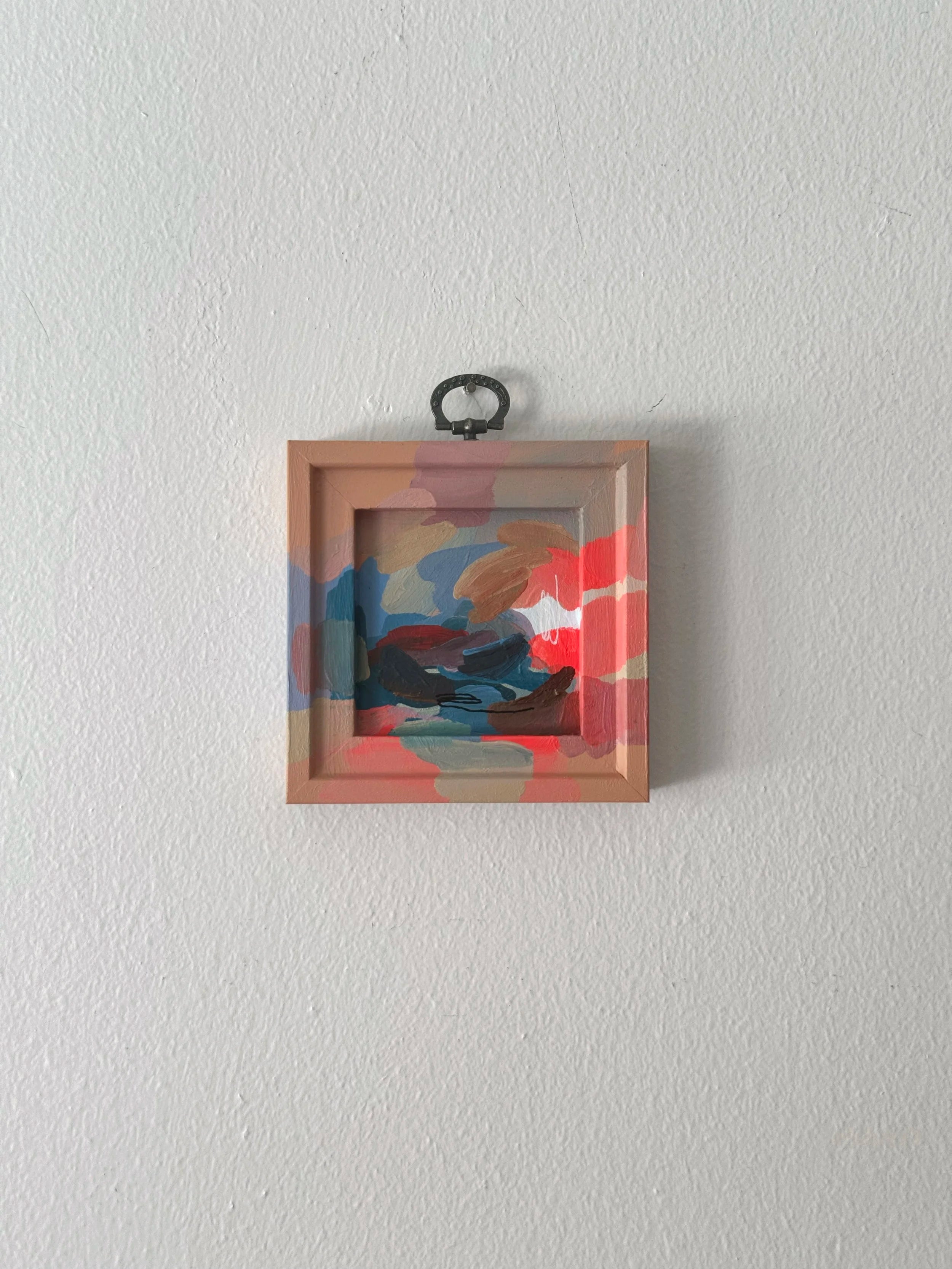Acrylic and marker on paper and MDF frame. Overall dimensions are 4×4.75”.