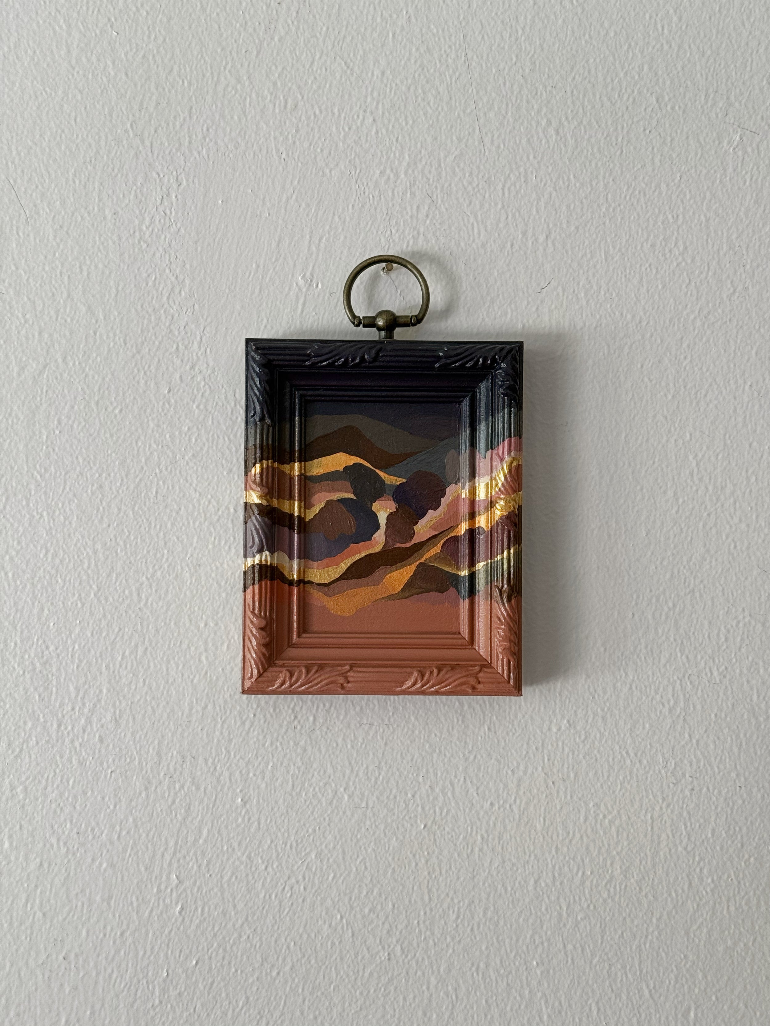 Acrylic on paper and MDF frame. Overall dimensions are 3.75×5.5”.